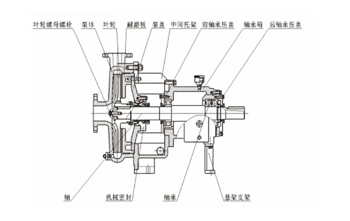 5)葉輪輪毂(gū)與泵蓋間有較大(dà)的錐形空間,防止(zhi)固相介質進入軸(zhou)封。
